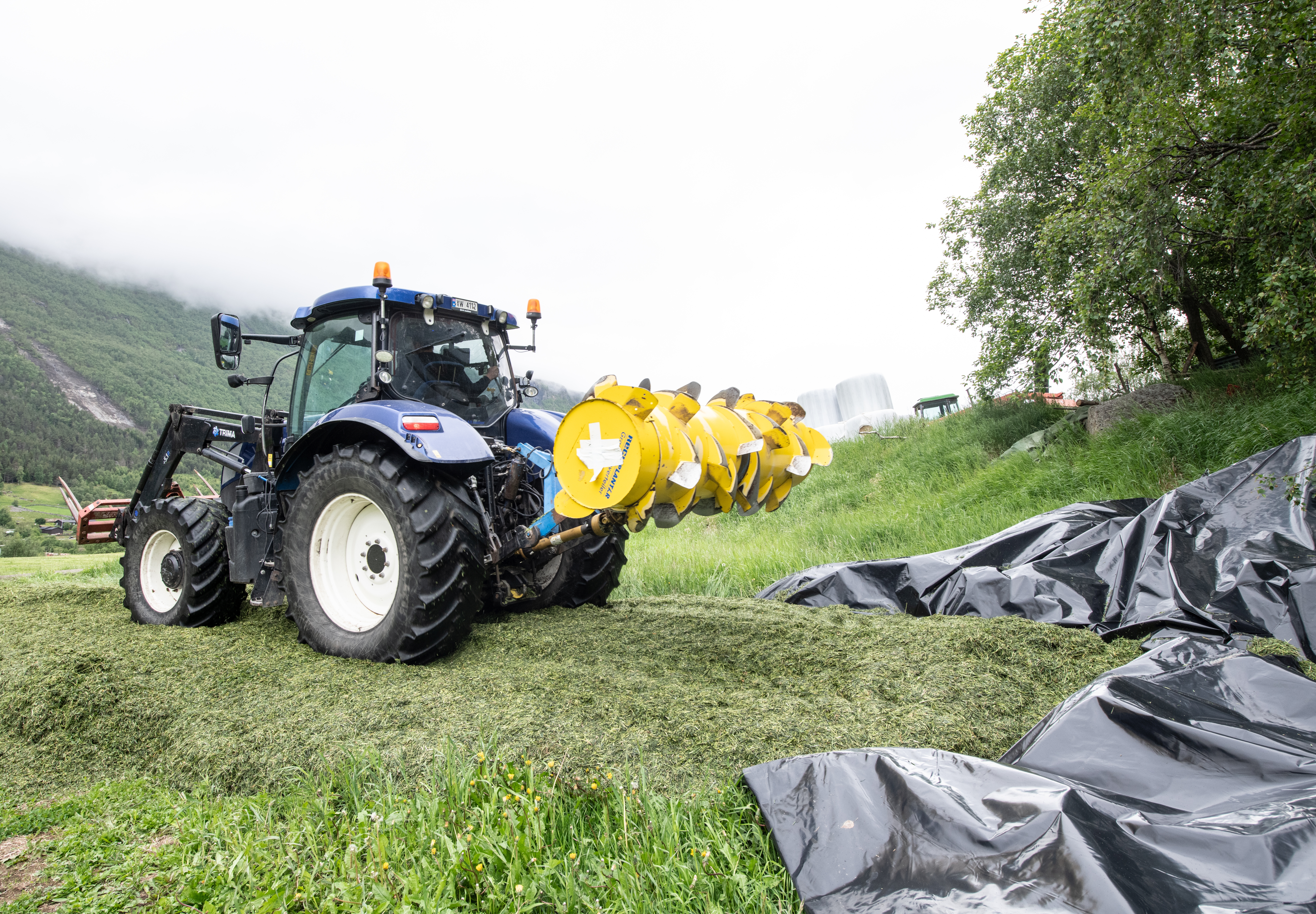 FULL FART: Førsteslåtten hos Hans Erik Kolden kom i silo under gode forhold selv om værmeldinga var truende.