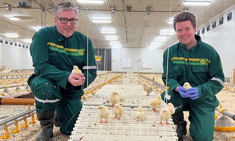 - Ingen innsett er like. De daggamle fra Samvirkekylling kan variere fra 37 til 47 gram. Eldre høner legger større egg som blir større kylling. Så snart jeg får slakteoppgjøret, har jeg kontakt med min rådgiver på slakteriet og salgskonsulent Ivar Bjerkan i Felleskjøpet. Vi diskuterer om det er noe jeg kan gjøre for å treffe enda bedre med neste innsett. Felleskjøpet med Ivar, hans fagsjefer og Felleskjøpet Fôrutvikling er på og i stand til å komme med råd og tiltak når det er behov. Det gir meg en veldig trygghet som produsent, sier Bjørnar Støre, som også er lokal tillitsvalgt for Levanger og Frosta i Felleskjøpet Agri.
