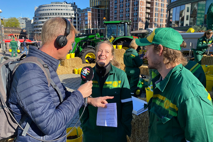 MEDIEOPPMERKSOMHET: Kampanjen fikk mye omtale i mediene. Her snakker Årets unge bonde-duo med P4 som hadde innslag i morgensendingen fra standen på Oslo S.