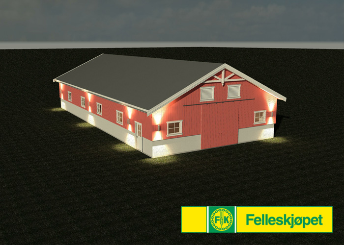 NESTEN 300 KVADRAT: Fjøset er 12 meter bredt og 24,5 meter langt. Byggesettet, som inkluderer alt over gulvet, kostet 380 000 kroner. Bygget er modellert av Felleskjøpet sitt tegnekontor v/ Joakim Tørnby. 3D-tegningene gir kunden gode forutsetninger for å se hvordan bygget blir ferdig.