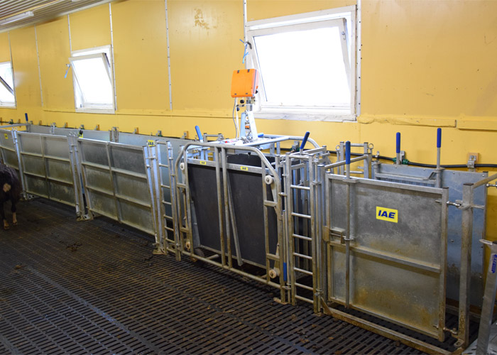 LETT Å HOLDE REINT: Plastgulv med 15 millimeters spalter gjør renhold enkelt. I den ene enden av fjøset har Preben og Kristina sorteringsanlegg med vekt og behandlingsboks.