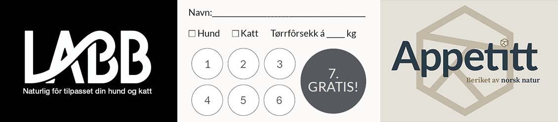 Når du kjøper hundefôr eller kattefôr hos Felleskjøpet får du hver 7. sekk med Labb og Appetitt tørrfôr gratis. En forutsetning er at du benytter stempelkortet hver gang du kjøper Appetitt og Labb tørrfôr i en av våre butikker. Når du starter på stempelkortet velger du type hundemat eller kattemat og kilostørrelse på sekken og fortsetter på det samme fôret.