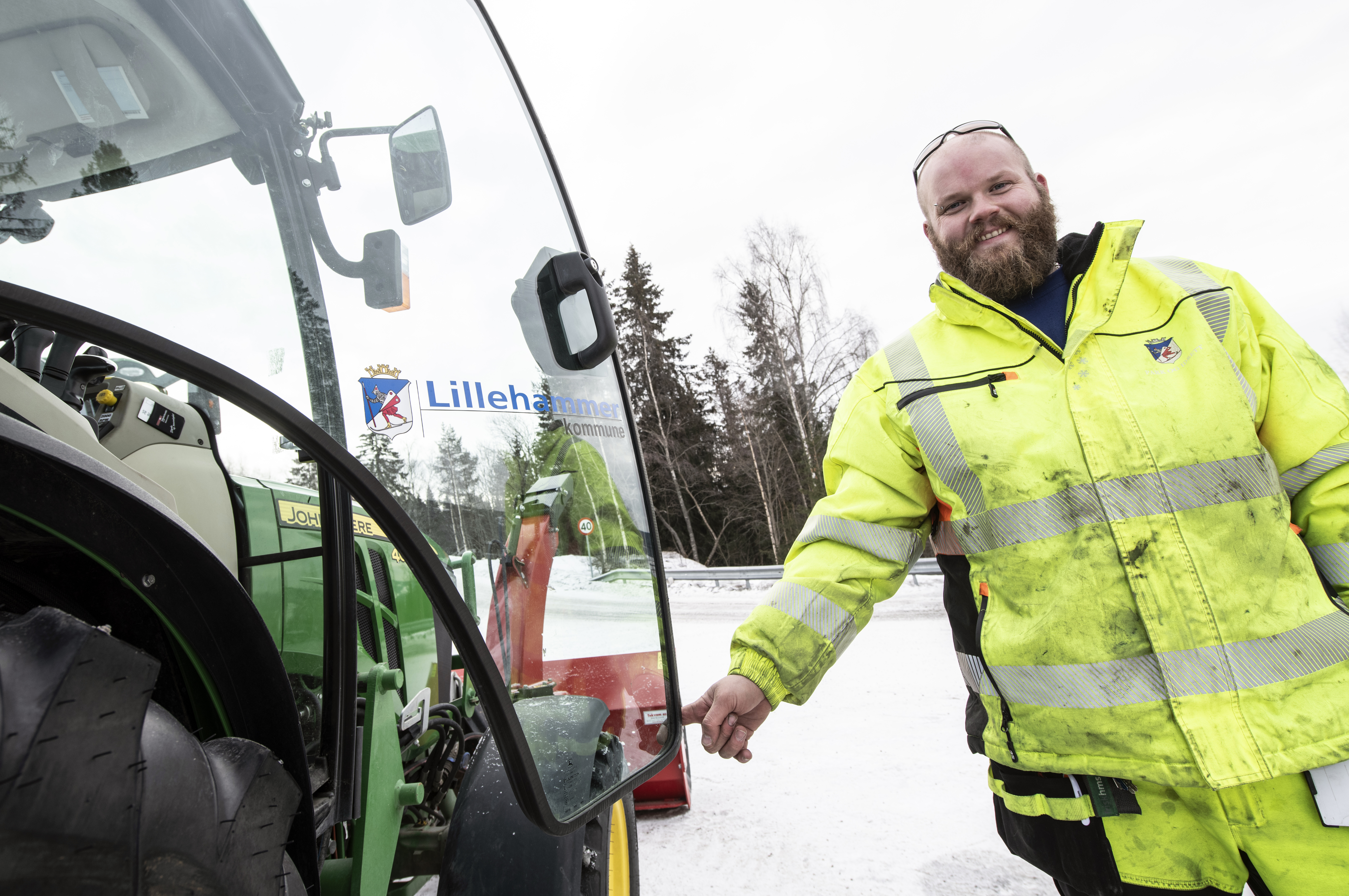 – Det er en helt rå traktor. Krefter og komfort overstiger annet vi har prøvd, sier maskinfører Einar Andree Lillerødberget. Ved årsskiftet kunne han sette seg opp i Lillehammer kommunes flunkende nye John Deere 6250R, som utover vinteren har gått i snørydding, veihøvling og annet grovarbeid i OL-byen.
