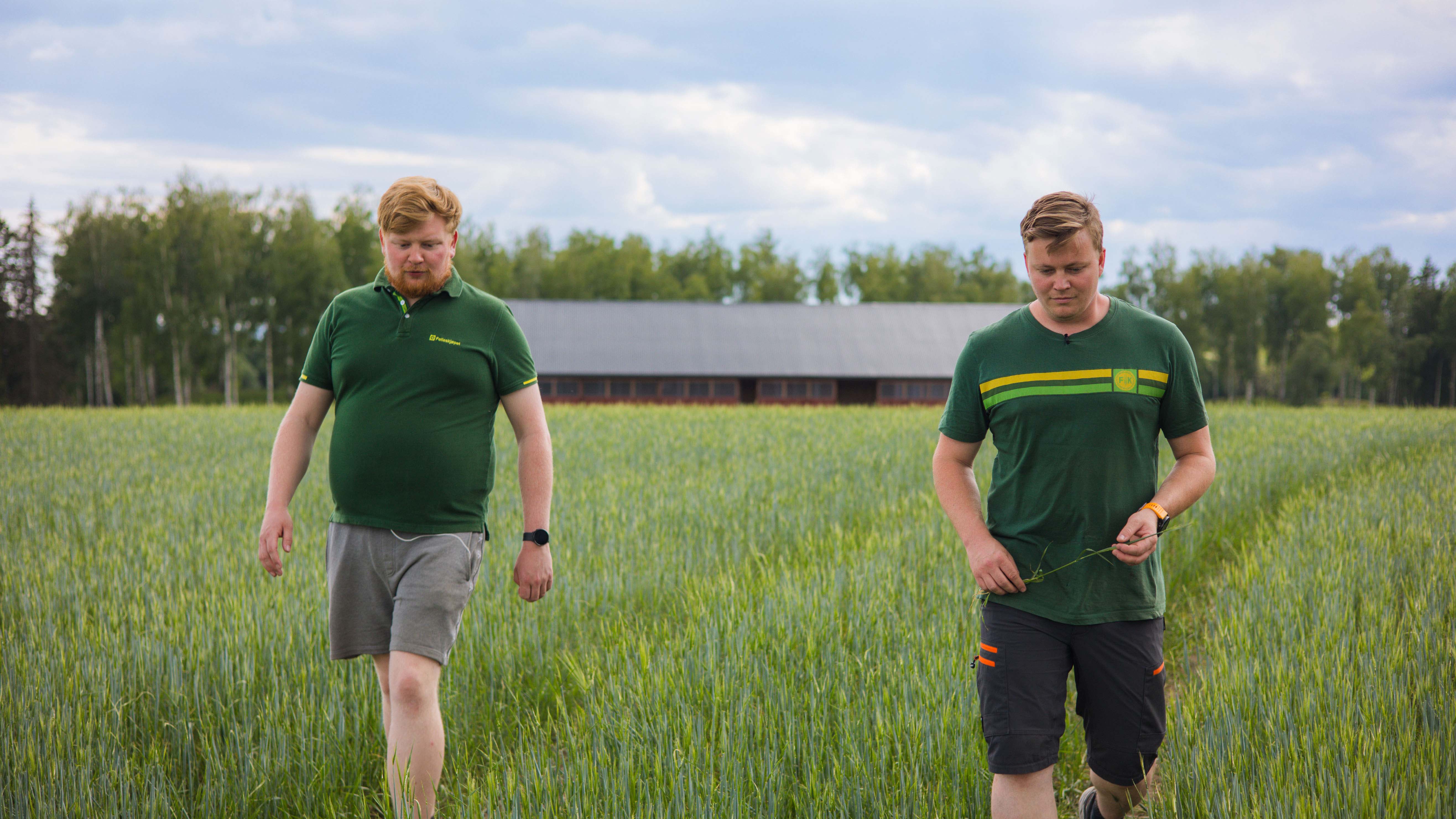 Marius Elsetrønningen (t.v), spesialist på presisjonslandbruk og Jon Ole Botnevik (t.h), utviklingsleder i presisjonsjordbruk i Felleskjøpet Agri. Foto Tun Byrå