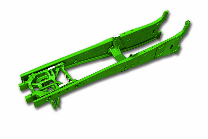 John Deere 6 R har en unik helramme som forbinder traktorens framaksling og bakaksling. Resultatet er et chassis med stor styrke hvor frontlaster og fronthydraulikk monteres rett i ramma.