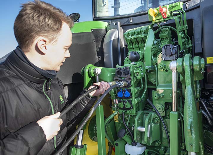 John Deere er markedsledende på presisjon. Autostyring med inntil 2,5 cm nøyaktighet, seksjonskontroll og Isobus gir deg det beste grunnlaget for presisjonskjøring og optimalisert produksjon med minst mulig innsatsmidler. Traktoren kan kobles opp til dine digitale skifte- og styringsverktøy for toveis overføring av eksempelvis kart og avlingsdata. Med JDLink kan du og din servicetekniker ha tilgang til traktoren i sanntid for fjernhjelp. John Deeres unike og avanserte logging av feilkoder kan forutse behov for service og skifte av vitale komponenter før en mulig skade og påfølgende driftsstans.