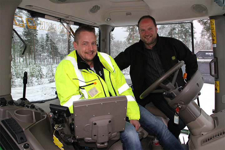 - En John Deere 6130 R Ultimate med vikeplog og en 252HSA-fres fra Tokvam er avanserte produkter. Kunden får mye større glede av utstyret ved å lære seg mer enn å starte og stoppe, sier traktorselger Erik Aaen fra Tynset, som sto for opplæringa. Verkstedleder Bjørn Stenersen fra verkstedet på Koppang var med som representant for verksted og ettermarked. Mekaniker Frode Godtland fra Tynset sørga for å legge inn alt på telefoner og PCer til de tre brukerne hos Olsbakk. De tre fra Felleskjøpet passa også på at JDlink og overvåkning med strenge personvernkrav for ekspertalarm og drivstoffgaranti var godkjent av alle parter før traktoren ble tatt i bruk. Seansen tok tre timer inkl. kaffe og kake. – Når man gjør store investeringer for flere år, betyr det mye at vi som kunder blir satt pris på, sier Arild Olsbakk.