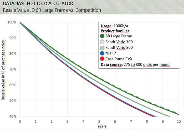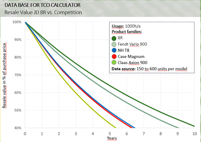 Analysen hans av de 150 traktorene viser at verditapet etter ett år og gjennomsnittlig kjøretid på 979 timer var på 10 prosent. Selv etter fire år og 2500 kjørte timer var gjennomsnittlig annenhåndsverdi for de undersøkte traktorene over 80 prosent av nyprisen. Selv etter åtte år var gjennomsnittlig annenhåndsverdi 75 prosent av nyprisen for de undersøkte traktorene.