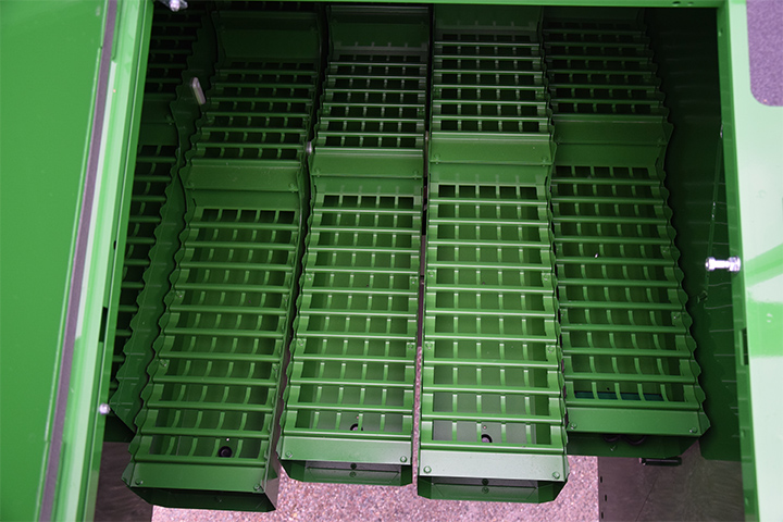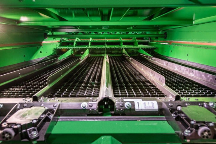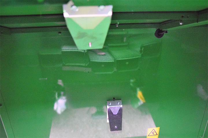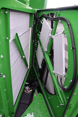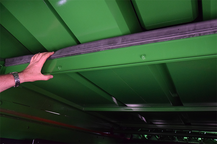 På maskiner som står ute i høstsesongen er dette punktet veldig viktig. Hvis det regner og det kommer vann inn på risterne og dette renner ned på tilbakeføringsplata, kan det bygge seg og støv og skitt der.