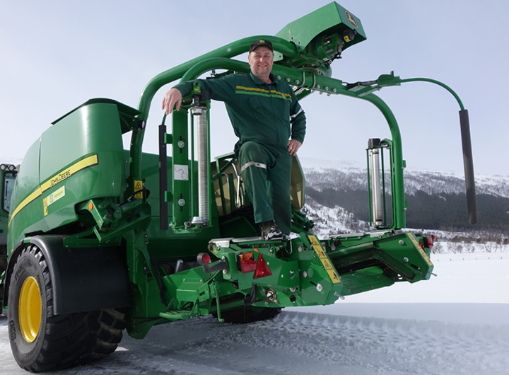 Den teknisk interesserte entreprenøren har hatt flere besøk fra John Deeres pressefabrikk i Frankrike. – Jeg er ganske heldig. Folkene fra fabrikken har med seg mye erfaring. Jeg stiller spørsmål som de har løsninger på. Og det er artig at jeg kan komme med informasjon som er nyttig for dem. Da føler du at du gjør en viktig jobb, sier han.