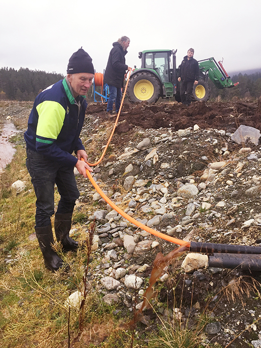 SPYLING AV GRØFT: Eivind Bergseth (t.v.) er rådgiver i hydroteknikk hos NLR Innlandet. Her er han i full sving med spyling av grøft. Foto: Ole Jacob Ulberg