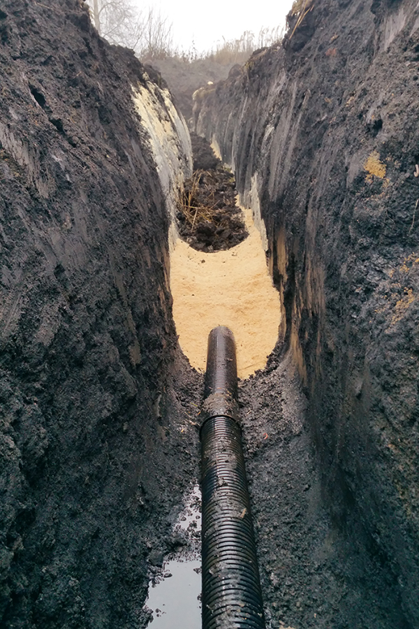 TRADISJONELL METODE: Bildet viser 110 mm rør, nedlagt med sagflis som filtreringsmateriale. Foto: Ole Rustad