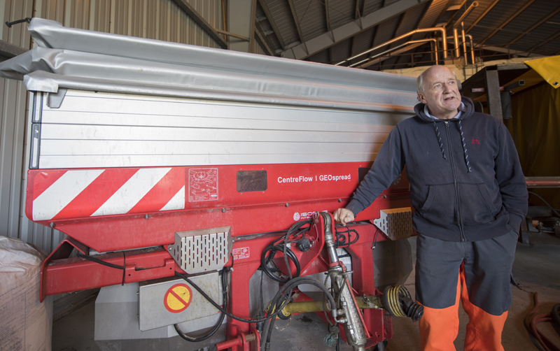 NØYAKTIG: – Når jeg har gjødslet 90 mål og det er igjen seks kilo i GEOSPREAD'n, føler jeg at jeg har gjort noe riktig, sier Fritjof Sandstad.