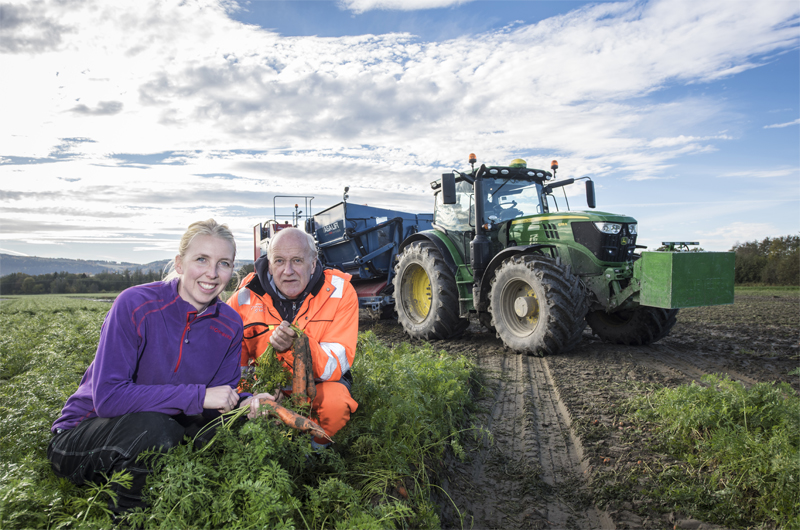NY HVERDAG: Kine Sofie og Fritjof Sandstad starter gulrotopptakinga i slutten av juli og holder på til «vinteren kommer». De sparer mange arbeidstimer med presisjonsteknologien.