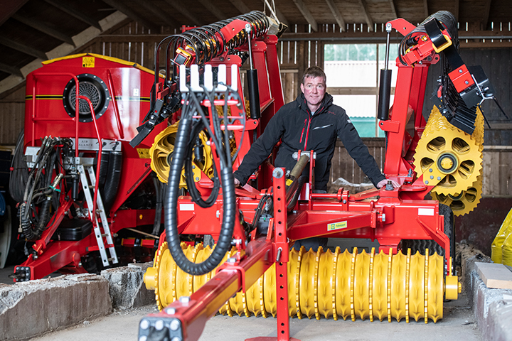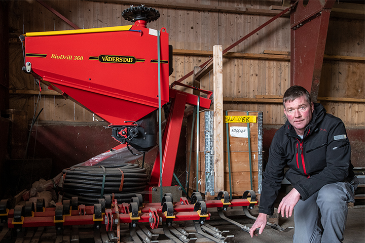 – Totalt sett er vi veldig fornøyd, ikke minst med kapasiteten. Hjulgangen rett foran sålabbene lager et fint såbed. Første året sådde vi litt for grunt og fikk for dårlig spiring, men vi har fått mye tips fra Väderstad og Felleskjøpet og har lært oss mye. Vi hadde også utfordringer med utmatingen av gjødsel første året, men dette ble fulgt veldig bra opp fra Väderstad og er utbedret, sier Aandstad.