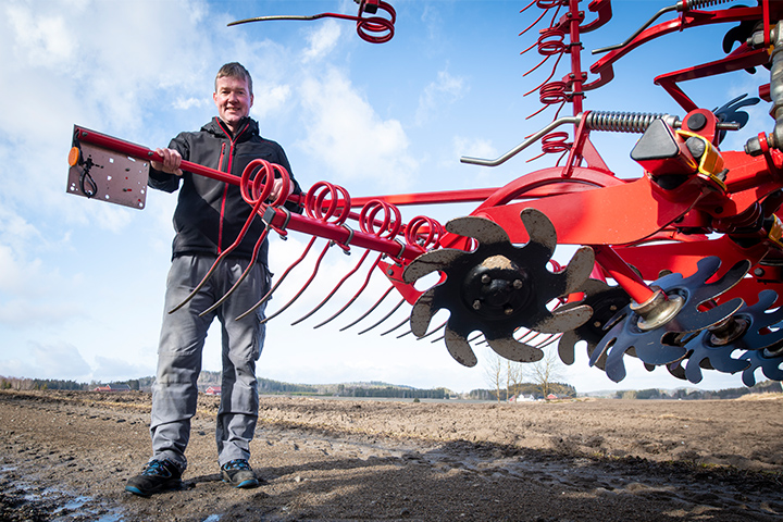 – Vi var veldig fornøyd med den, men overflata ble ikke så jevnt. Med Swift'n er vi mer fristilt i forhold til etterredskap. Jeg byttet de standard lamellplankene med etterharv. Ved å justeres den hydraulisk etter jord og forhold, blir det jevnere. Hjulgangen er også riktigere plassert på Swift'n, slik at den følger terrenget bedre og sikrer jevn arbeidsdybde. Det er også en stor fordel at du kan variere arbeidsdybde i et stort intervall, sier Aandstad. På våren bruker han likevel såbedsharva på det meste.