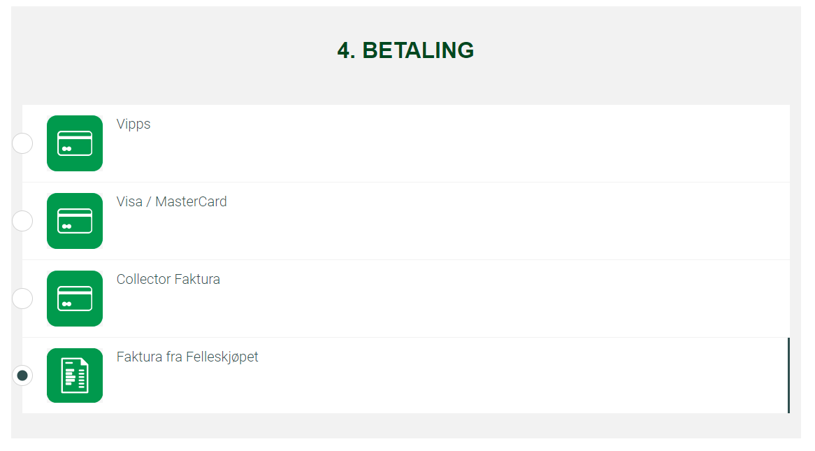 - Velg faktura under betalingsvalg