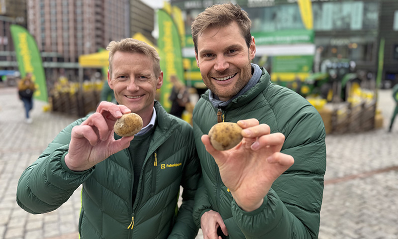 Gjennom flere arrangementer skal bondesamvirket dele ut nærmere 30.000 sertifiserte settepoteter, mange satt i en gul Felleskjøpet-bøtte med litt jord. De første bøttene ble mandag utdelt utenfor Oslo S, hvor også landbruks- og matminister Nils Kristen Sandtrøen deltok.