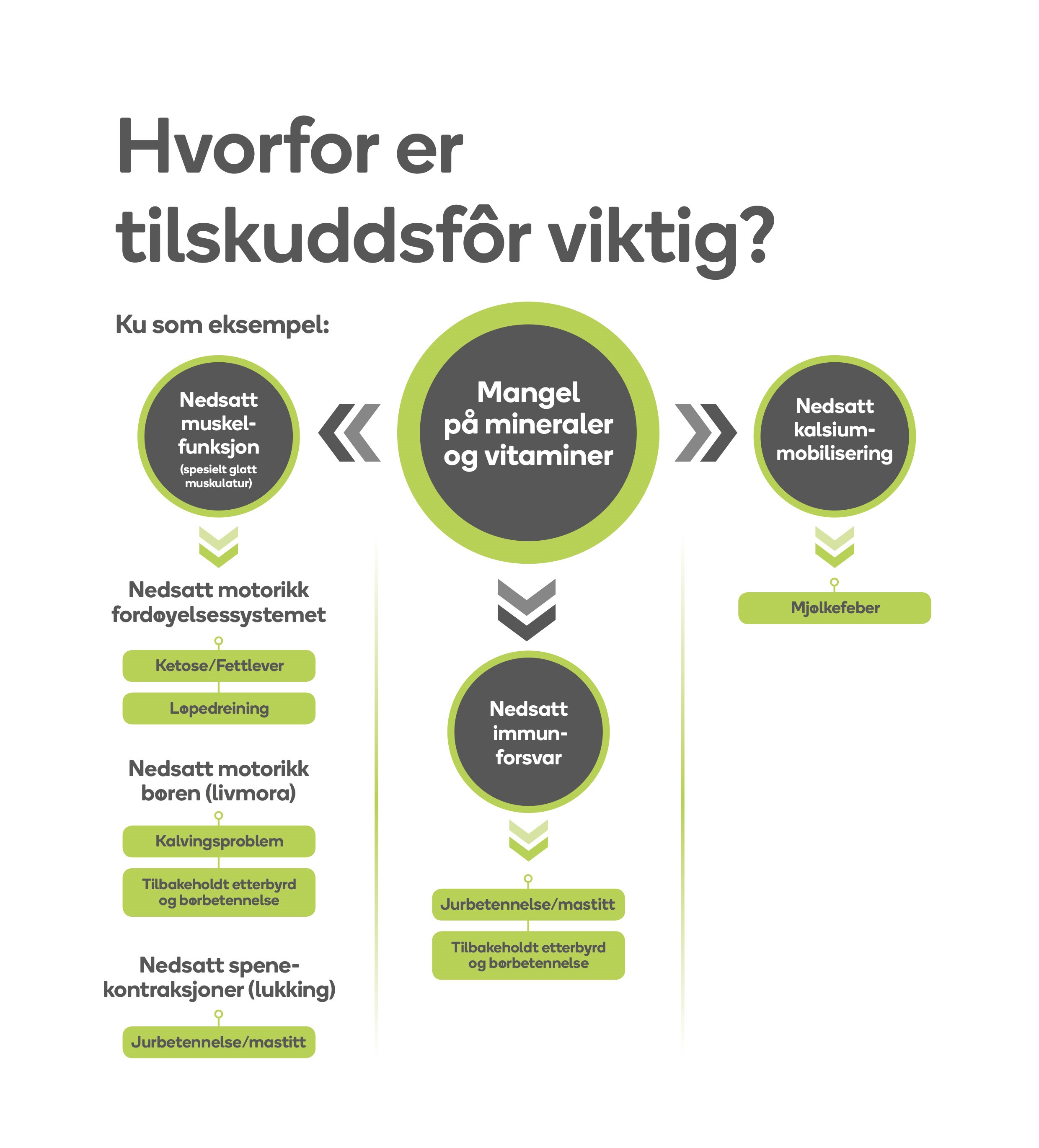 Det er spesielt viktig at dyra får tilskuddsfôr når det gis lite eller ikke noe kraftfôr. Det er viktig at dyra får i seg både makro- og mikromineraler og vitaminer for at alle næringsbehov skal være tilstrekkelig dekket.